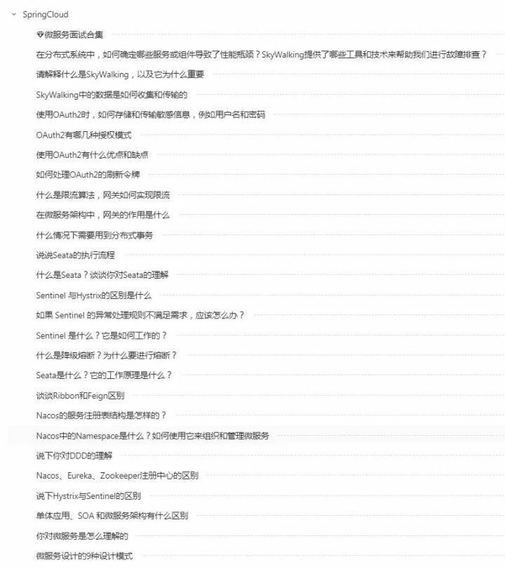 主要有Java基础、并发编程,JVM、Mysql、Spring、Mybatis、Redis、MQ、Zookeeper、Netty、Dubbo、Spring Boot、Spring Cloud、数据结构与算法、打算模式、收集与操作系统、三高架构、线上疑难问题、大厂口试场景题、时势亮点和难点、K8S云原生......